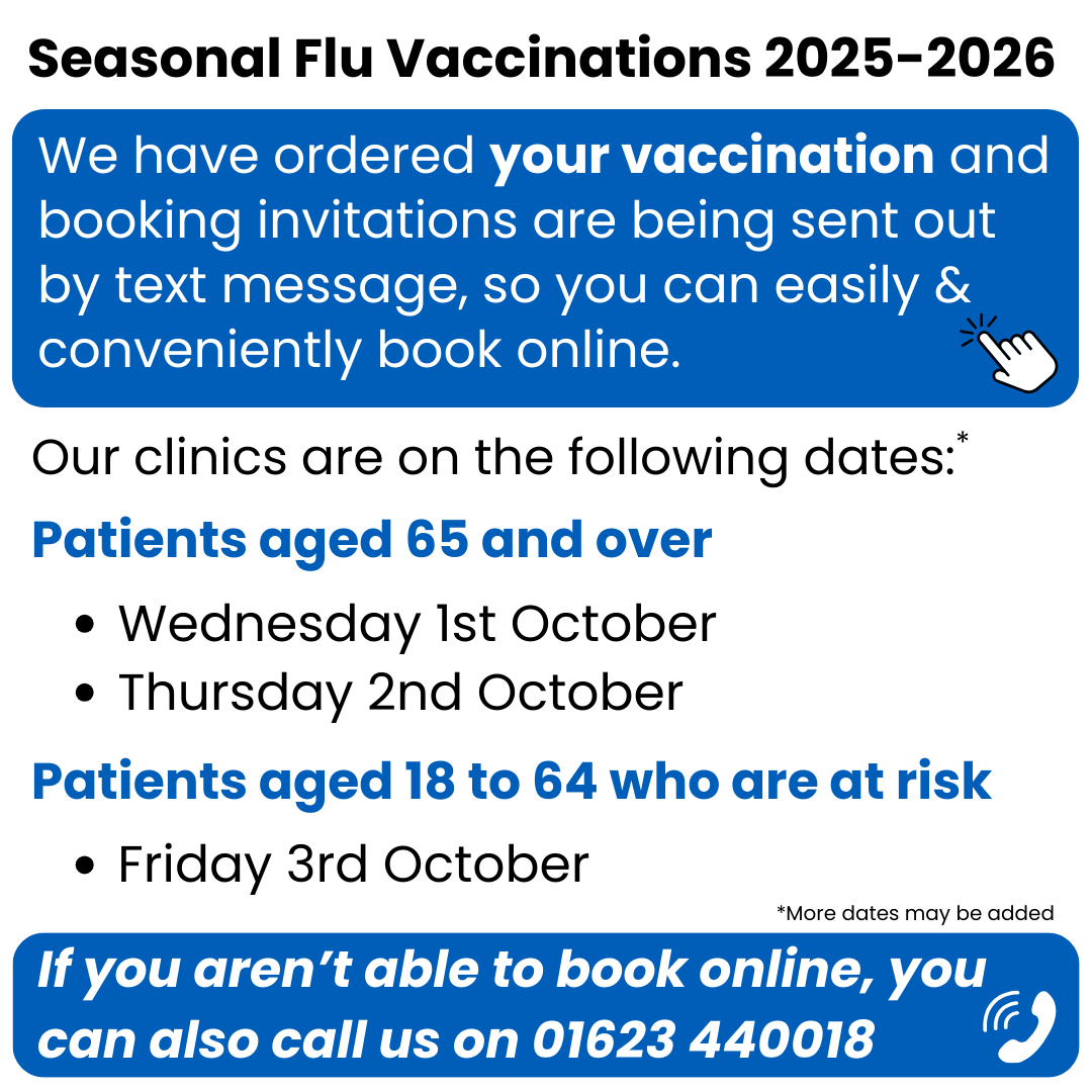 We are holding a seasonal flu clinics from October 2025– please contact reception for booking details.
